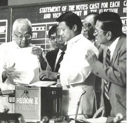 The snap elections took place on February 7, 1986. On February 10, 1986, there have been multiple complaints of widespread fraud by Ferdinand Marcos’ supporters and 30 computer workers in the Government’s vote-counting agency reported that the returns are being falsified in favor of Ferdinand Marcos; vote-buying was also prevalent. All these activities show a lack of respect for electoral procedures."There is no evil or malicious, mischievous intent on the part of the Government.'' Ferdinand Marcos aired his side about the allegations thrown at him in NBC and ABC News interviews. He commented that the allegations were ''part of a smear campaign,'' and added, ''I find it degrading." He went on further and said that the main problem was that voters were "held back by priests, nuns, and Namfrel representatives."On February 15 11:39 pm, the National Assembly—dominated by Ferdinand Marcos’ political party proclaimed Marcos the winner of the February 7 snap elections. However, this was recieved with public outrage. At a televised late-night victory celebration at Malacanang Palace, Mr. Marcos said the election "strengthened the spirit of the Filipino nation"With Marcos’ victory announced, this led for the opposition’s indignation rally on February 16, 1986 called Bayan rally [2]. During the Bayan rally held at Luneta, Cory Aquino spoke to around two million people, and called for massive civil disobedience and boycott of Marcos-crony owned companies and products"We have not come to celebrate victory,” Aquino told the huge but largely glum crowd. “Nor have we come to concede defeat. We have come . . . to continue the struggle against the forces of evil and in this we are not alone. We, the people, are together. I am not asking for a violent revolution. This is not the time for that."Cory Aquino’s speech was replied with her mass of supporters chanting, “Dictator! Dictator!”"Let us show Marcos and the world he is not supported by the people,” Aquino declared, adding that the protest should be a peaceful “day of prayer.**Sources: