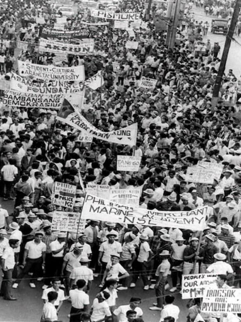 Under Ferdinand Marcos’ first term, the Philippines was plagued with poverty. It was under his term in the early 1960s that the Philippines experienced a disappointing economic performance: increasing government debt, high inflation, and unemployment. Such economic depression encouraged civilians to air their strife—some of these protests resulted in violent dispersals.Despite the country’s ordeal, by the end of 1969, the majority of Filipinos still continued believing in Marcos’ capability that he won the November 11, 1969 elections. This granted him his second term and was supposedly his last in accordance with the 1935 Philippine Constitution. Although the majority has gained him the privileged powers vested in him, it is undeniable that the country’s poverty and the ballooning debt caused by his administration did not leave the people’s scrutinyThis caused days of disquiet and nights of rage from as early as January 1970 until March. There has been a series of protests held at Plaza Miranda, the US Embassy, Mendiola, and Sunken Garden. One of which was the protest on January 23 attended by 50,000 protesters after he delivered his fifth State of the Nation Address (SONA) in the National Museum of Fine Arts–the then legislative building. But the most remarkable and most violent protest was the Battle of Mendiola on January 30, 1970, that which lasted until 5 pm.The cry of the protesters as they marched towards their rendezvous was: “Makibaka! Huwag matakot!”This series of protests is not only attended by progressive organizations, but also students, student farmers, laborers, and urban groups to the point that Enrique Sta. Brigida, a student of Lyceum of the Philippines, was caught and tortured to death by the police because of his participation in these rallies.Sources:
